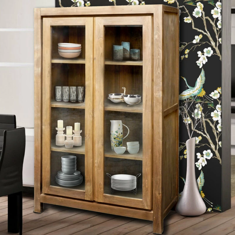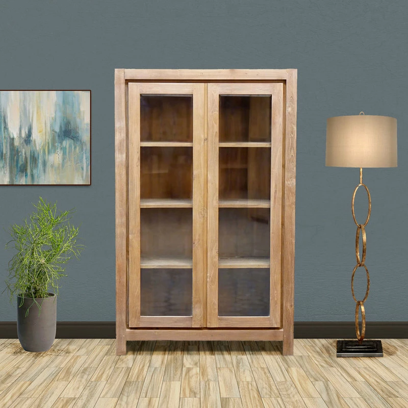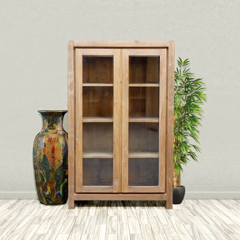 The quality craftsmanship and unmatched style you have come to expect from the Chic Teak brand is at the forefront of the design of our recycled teak. Handcrafted from 100% eco-friendly repurposed teak wood by the village craftsmen on the Island of Java, this cupboard will hold your china, books, collectibles and more with style and grace for many years to come. This piece has an unfinished and natural look and while your decorating style may change over the years, this piece has a timeless look all its own. This cupboard will fit in perfectly with many different dΓ©cor styles.
