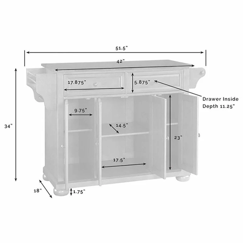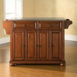 Constructed of solid hardwood and wood veneers, this kitchen island is designed for longevity. The beautiful raised panel doors and drawer fronts provide the ultimate in style to dress up your kitchen. Two deep drawers are great for anything from utensils to storage containers. Behind the four doors, you will find adjustable shelves and an abundance of storage space for things that you prefer to be out of sight. Style, function, and quality make this kitchen island a wise addition to your home.