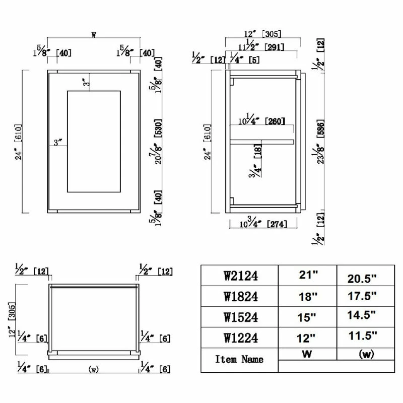 - Overall Depth: 12″ (measured from back most to front most part of cabinet)