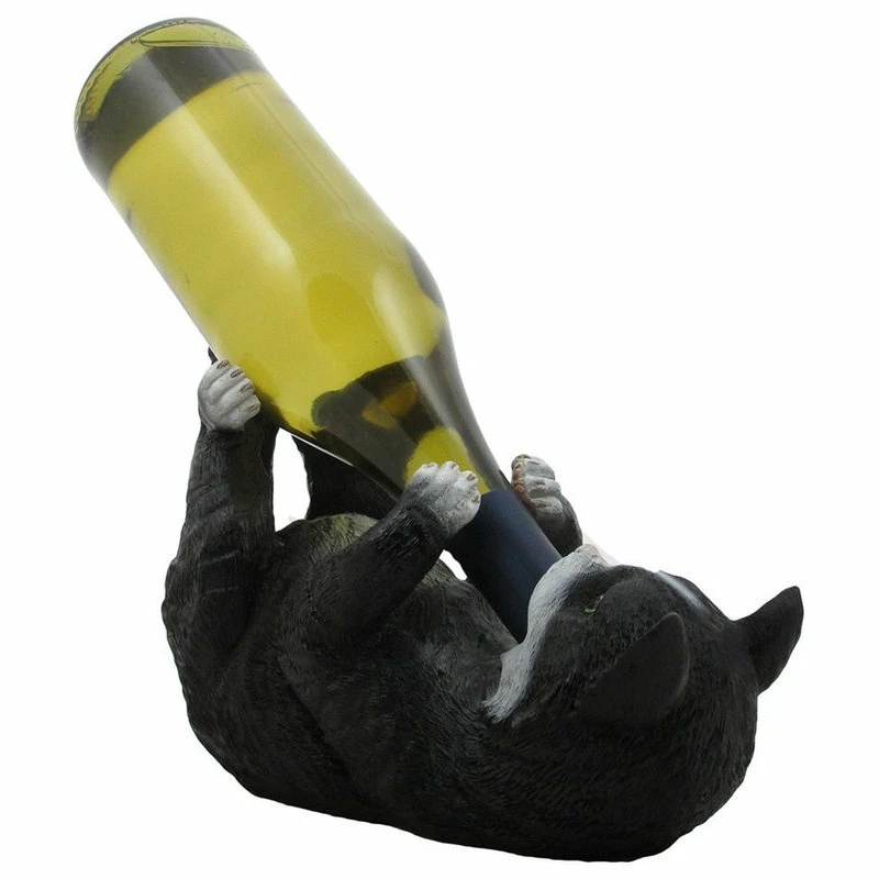 - Black and white cat wine bottle holder is molded from cold cast resin.