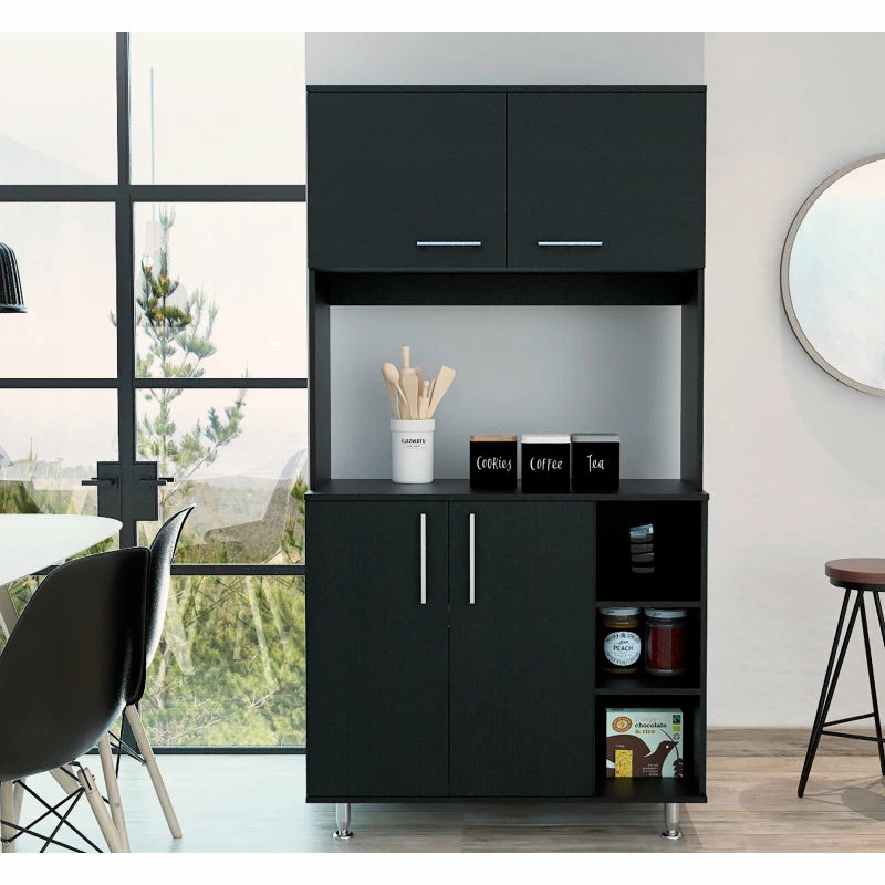 Efficient, unique, and multipurpose, these are the most notable features that have this beautiful piece of furniture, a functional and practical system so you can store in your pantry all the accessories you need to complement your kitchen; thanks to its divisions, this furniture can be used for different functions, you can store appliances, its drawers allow you to store kitchen utensils covering them from dust and moisture. Thanks to its open shelves, you can put cans, boxes, and other accessories to facilitate your stay in the kitchen. Buy this product and take advantage of its large size and number of storage drawers. The Colorado pantry is a great all-around cabinet. This pantry has a ton of features that will cover every single need of extra storage in your kitchen. Featuring: At the top of the hutch, you will find two spacious cabinets (15.7″H x 37″W). A counter surface great to place small appliances like a microwave, coffee maker, air fryer, or toaster. A lower two-doors very spacious cabinet with a height of 27.75″ is perfect for those oversize pans and pots. Three small open shelves on the lower right side are the final touch to a complete product for your kitchen. This product has adjustable metal legs to provide stability and a wall anchor for you to install the product to a wall. Product dimensions are 37.4″W x 15.4D x 70.8″H