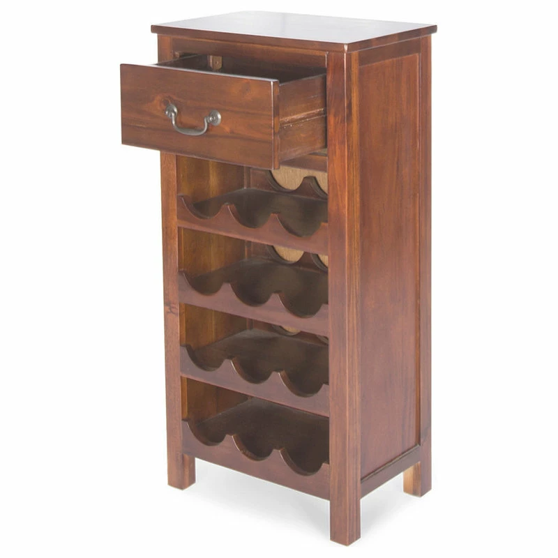 This wine rack is the ideal companion for any wine lover. Not only can you store up to 12 bottles, you can also keep a corkscrew and other wine necessities within reach with the perfectly placed drawer. Also, the included countertop provides just the right amount of space to pour your wine and serve your guests without having to dirty a different countertop. A one stop shop for all of your wine needs.