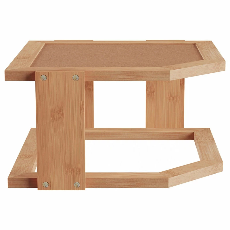 BAMBOO CONSTRUCTION- This 2-Tier corner shelf is not only a space saving organizer that compliments your home decor, it’s also constructed from sturdy bamboo, making it durable, eco-friendly and bacteria resistant.