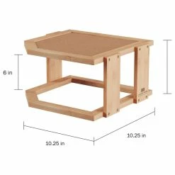 PRODUCT DETAILS- Material: Bamboo and Cork. Overall Dimensions: (L)10.25″x (W)10.25″x (H)7″. Height Between Shelves: 6″. To clean, hand wash with damp cloth & towel dry. Do not let your bamboo item sit in water.