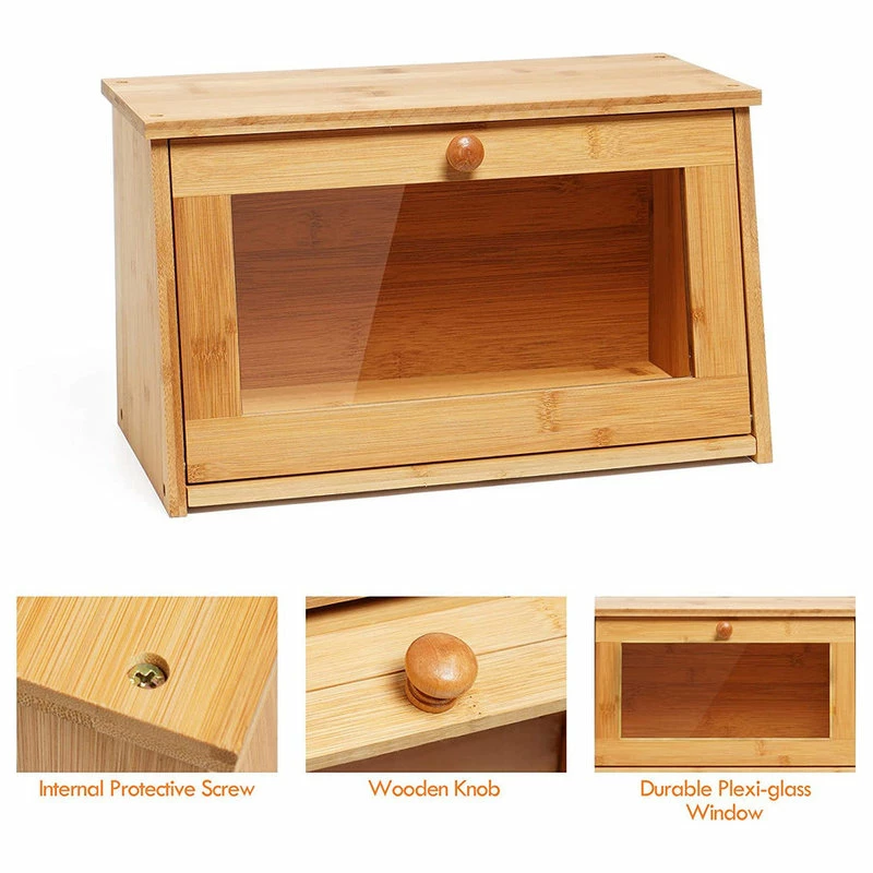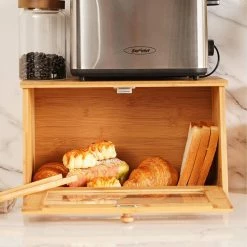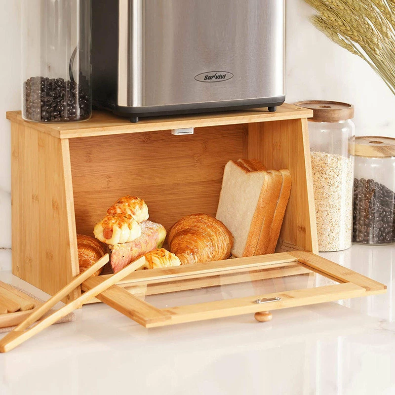Is your bread getting stale before you can finish it? The Gavin bread box will keep your bread fresh longer! The bamboo-made storage box is easy to clean. Featuring a clear front window to easily view inside and a magnetic lock to provide a secure closure. Store bread, pastry, or any other kitchen items in this bin. With a solid top, this can function as a shelf for your kitchen appliances too. The box is functional while not taking up much counter space. Easy assembly.