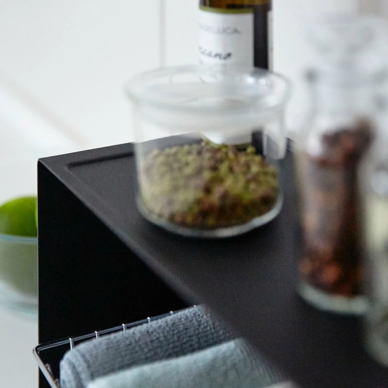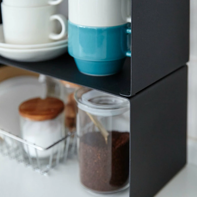 Stack spices, jams, teas, cups or other items you frequently reach for on this stacking freestanding shelf. This clean, sturdy design stacks comfortably and looks great on any countertop. Can also be used inside cabinets to increase vertical storage space. Outside of the kitchen, can be a great book or paper cubby, computer riser, and so much more.